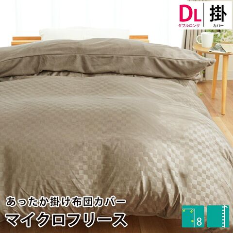 あったか 掛け布団カバー ダブル ロング 市松柄 190×210cm 和モダン 衿・裏 マイクロフリース 毛布にもなる あったかカバー スナップボタン 冬 冬用 布団カバー あたたか 暖か 秋冬 当社限定品 DL 節電 (ブラウン)【7DA-T151900F-93BR】
