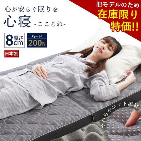 【旧モデル在庫限り特価】高反発 マットレス シングル 折りたたみ 三つ折り 厚み8cm 日本製 心寝 ハード 自社製造 (シングル)【HS-602AN001HGY】