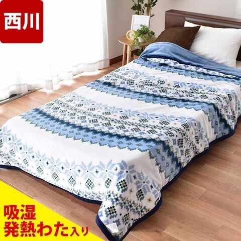 西川 毛布 シングル 吸湿発熱わた入り フランネル 2枚合わせ毛布 あったか 冬 140×200 洗える 丸洗い 軽量 掛け毛布 ブランケット おしゃれ かわいい 節電 北欧 無地 冬用(シングル ノルディック柄:ネイビー)【6SA-FQ00015258NB】