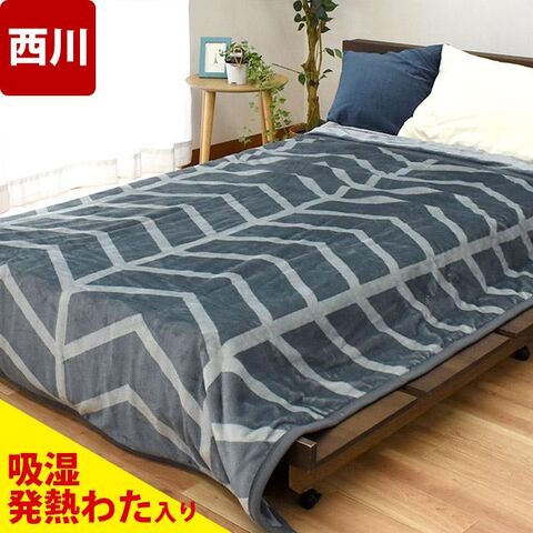 西川 毛布 シングル 吸湿発熱わた入り フランネル 2枚合わせ毛布 あったか 冬 140×200 洗える 丸洗い 軽量 掛け毛布 ブランケット おしゃれ かわいい 節電 北欧 無地 冬用(シングル ヘリンボーン柄:グレー)【6SA-FQ01015249GR】