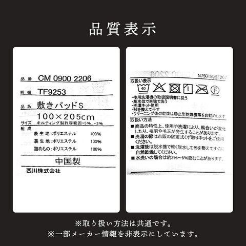 | サイズ | 約100×205cm シングル キルティング許容範囲+5%,-3% |