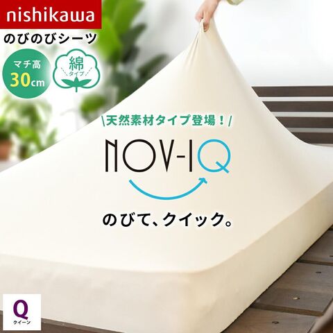西川 のびのび BOXシーツ クイーン キング Nov-iQ 綿 マチ30cm対応 伸びる ストレッチ 天竺 ノビック ボックスシーツ マットレスカバー シーツ マルチユースシーツ フィットシーツ 当社限定 AiR スヤラ ラクラ (アイボリー)【9Q-PK35003277IV】
