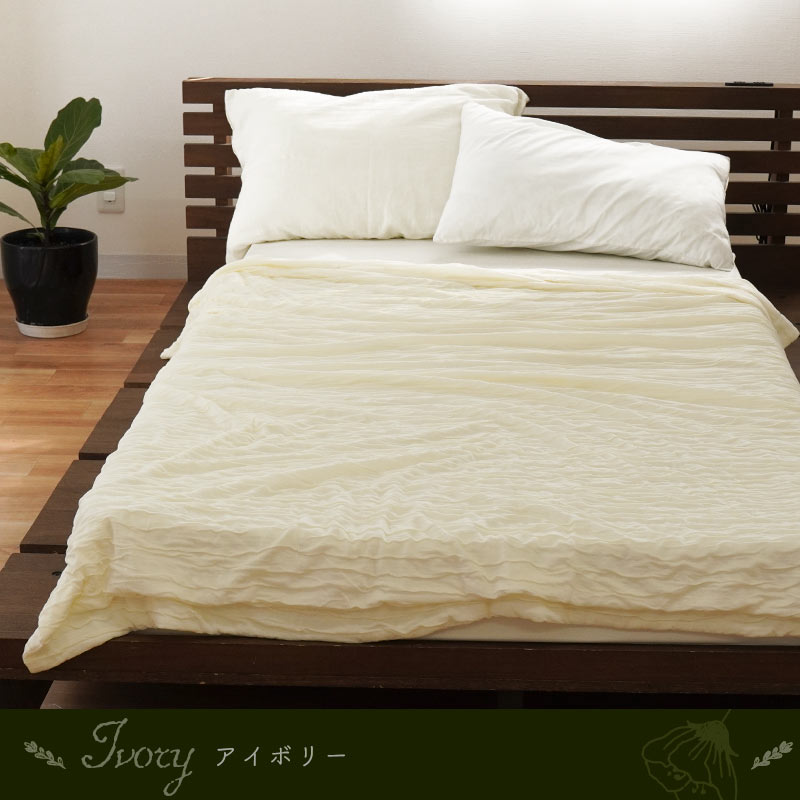 ざっくり織りのやわらか生地をくしゅくしゅ加工することで、シンプル無地でありながら存在感のあるデザインに。