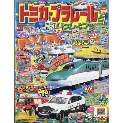 トミカ・プラレール・のりものがいっぱいのDVD、シール、ポスター、カードなどの付録つき! 大人気のトミカやプラレールの最新情報や図鑑やクイズなどのコンテンツがたくさん楽しめる、トミカ、プラレール、のりもの好きキッズのための雑誌です。