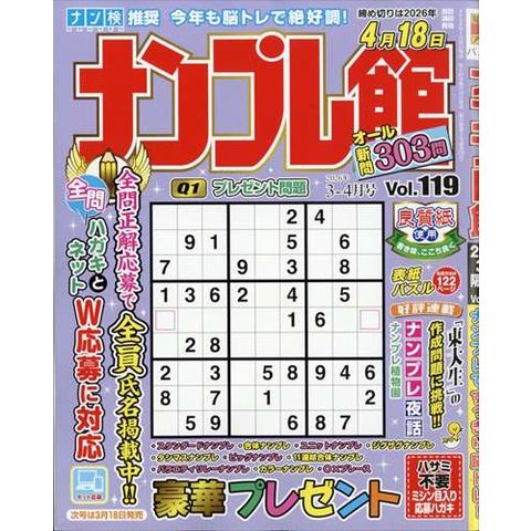 解き心地抜群の新作ナンプレを300問出題。初めての方でも手軽に解いていける『CLASS1』からテクニックを駆使して解いていく『CLASS4+』まで、各種難易度を出題しています。また、スタンダードなナンプレ以外にも『一つ違いナンプレ』『タシマスナンプレ』といった一味変わったバラエティナンプレも出題。この一冊でナンプレの魅力を余すことなく満喫できます。