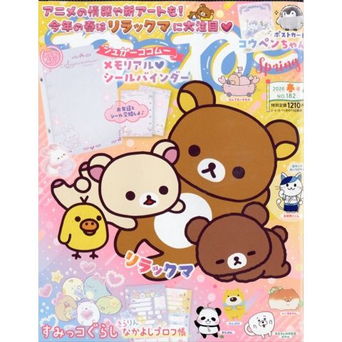 【表紙】 (メイン)リラックマ (サブ)すみっコぐらし、コウペンちゃん、シュガーココムー 等(内容)(内容) 表紙&巻頭特集は、アニメの新情報や新アートの解禁でこの春大注目の「リラックマ」がメインキャラクターとして登場! スペシャル付録には、お友達とシール交換も楽しめる「シュガーココムー」のメモリアル?シールバインダーがついてきます。さらに、とじ込み付録として「コウペンちゃん」のポストカードや、「すみっコぐらし」のプロフィールカードも付いた豪華仕様! そのほか、「いーすとけん。」「おじぱん」「まぼろしの喫茶店ポヤル」など、旬な人気キャラクター情報が満載の1冊です!