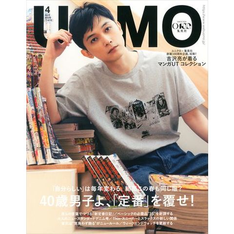 UOMO4月号の表紙を飾るのは、俳優の吉沢亮さん。集英社の創業100周年を記念したユニクロとのコラボプロジェクト「マンガUT 集英社創業100周年コレクション」のTシャツを着て表紙に登場します。3月16日(月)より100柄が順次発売となる本コレクションから、表紙の吉沢さんが着用したのは、自身が実写映画にも出演している『キングダム』のTシャツ! そして、大特集のテーマ「40歳男子よ、“定番”を覆せ!」も必読です。年齢やライフスタイルの変化とともに身に着ける洋服も自然と変わっていくのがUOMO世代。シャツ、スラックス、スウェット、デニム、スニーカーから時計まで、この春、大人が手にすべき新たな定番アイテムを提案します。