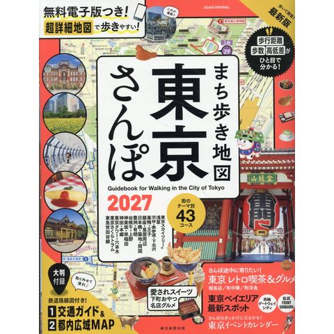 超詳細な地図が人気の、東京のまち歩きを楽しむガイド。既刊ムックの最新2027年改訂版。銀座や浅草、谷根千といった定番の人気エリアをはじめ、東京のランドマーク、東京スカイツリー&東京タワー周辺、ウォーターフロントの豊洲・有明など、東京を思いっきり楽しめる43の散歩コースを紹介しています。本誌では立ち寄りポイントのほか、おみやげ・グルメ情報なども多数掲載。巻頭特集では、東京のレトロなスポットやグルメを楽しむ企画のほか、最新スポットや季節のイベント情報も!一年を通じてさんぽを楽しめる一冊です。取り外せる大判広域MAP&交通ガイドの付録付き。(『まち歩き地図 東京さんぽ2026』の改訂版)【掲載コース】東京スカイツリー/浅草/浅草寺/向島/渋谷/表参道/表参道・青山/明治神宮/下北沢/巣鴨/王子/銀座/日比谷/丸の内/皇居周辺/千鳥ヶ淵/日本橋・人形町/深川・清澄白河/築地・月島/佃島/豊洲・有明/両国/浅草橋・馬喰町/蔵前/谷根千/谷中/根岸/上野/湯島/神楽坂/雑司が谷/早稲田/早稲田(ショート)/神田/小石川/本郷/本郷(ショート)/東京タワー/六本木・麻布十番/六本木/都電荒川線/東急世田谷線