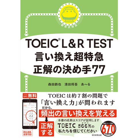 TOEICでは、全体の約7割の問題で「言い換え力」が問われます。「言い換えを制するものはTOEICを制する」のです。リスニング問題でも、本文を聞き取り、選択肢の言い換えにも気付けて、ようやく正解できます。本書は、頻出の言い換え表現を厳選し、一冊にまとめました。