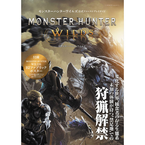 『ワイルズ』の新要素にフォーカスした解説や大型モンスターの紹介、各種武器の使いかたなど、これから旅立つすべてのハンターたちに役立つ情報を掲載しているほか、生命美に溢れるその世界観・モンスターの特徴を堪能できるビジュアルページも用意。付録の大型ファブリックポスター(B2サイズ)とともに、同作へのプレイ意欲が増大すること間違いなしのアイテムです。