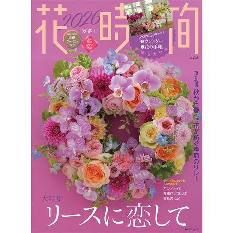 『花時間』は、美しい写真で綴るワンテーマ型の花のマガジン。今号は、「リースに恋して」と題し、さまざまなリースを紹介するほか、第2特集で「秋から冬、そして春に楽しみたい花」をお届けします。