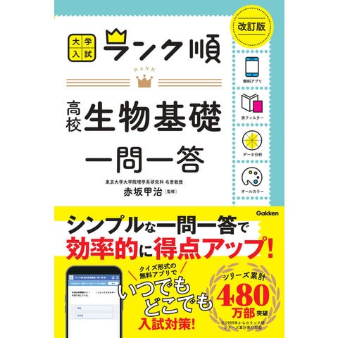 入試問題データを徹底分析した、生物基礎一問一答の決定版。重要頻度をランク順で明示し、「出る」項目を効率よく覚えられる。赤シート対応の誌面なので、覚えた用語をいつでもどこでも手軽に復習することができる。