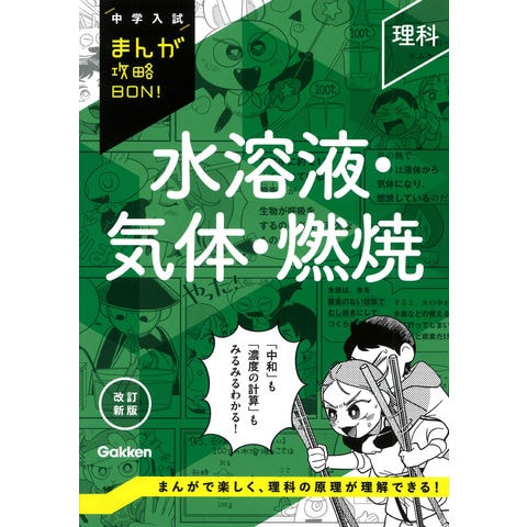 中学入試に必要な水溶液や気体、燃焼の分野をまんがでわかりやすく解説。中学入試対策や、小学生の日常学習、中学入学前の予復習にもぴったりです。楽しみながら学べて、理科が好きになる! 実際の入試問題を解くことで学習の確認もできるロングセラー参考書。