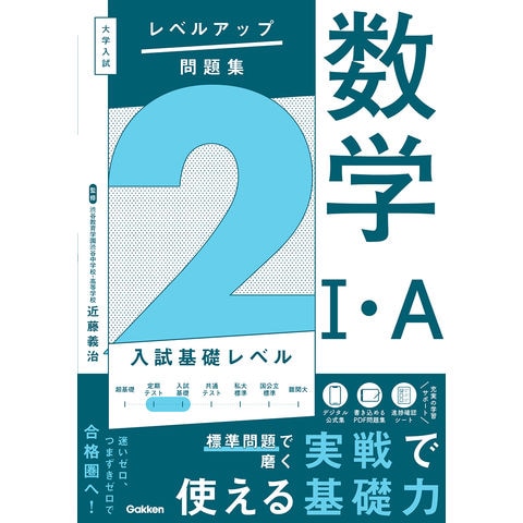 コンパクトなサイズとページ数に、数学Ⅰ・Aの基本を凝縮した問題集です。数学Ⅰ・Aの各項目を、問題演習とポイントを絞った解説を通じて、基礎から着実にステップアップできるよう制作されました。この「2 入試基礎レベル」は、標準問題に取り組むことで、実戦で使える基礎力を完成させます。