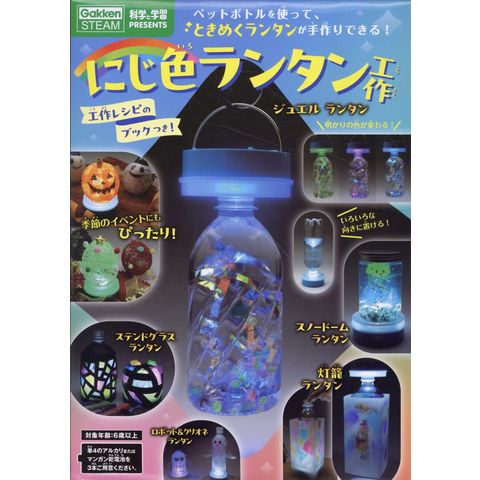 ときめくランタンが手作りできるキット。にじ色に変わるLEDのランタンスタンドのほか、オーロラフィルム、ラメ、ビーズ、白いランタンシェードなど、たくさんの素材が付いている。ガイドブックには、楽しい工作レシピがいっぱい! ペットボトルを使って、ステンドグラス風ランタンやスノードームランタン、灯篭ランタンなどの、幻想的でとても素敵なランタンが作れる。夏休みの自由工作やアウトドアにも役立ち、ハロウィンやクリスマスなど季節のイベントにもピッタリ!