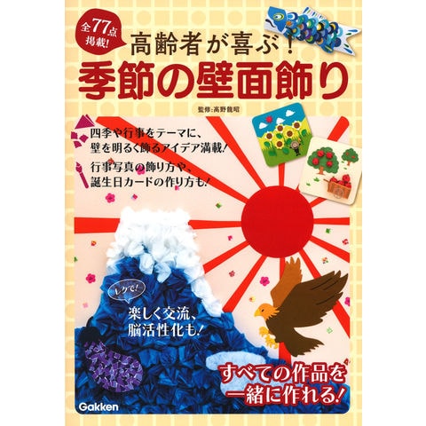 高齢者施設で今日から使える、壁面飾りのアイデア集。折り紙やティッシュはんこなど、身近なものを使って楽しめるうえ、出来上がりは華やかで立派。幼稚すぎないデザインで、一緒に製作して完成すればお年寄りも大満足! 四季を感じるテーマで飽きません。便利な型紙付き。高齢者が元気になるヒントも満載です。