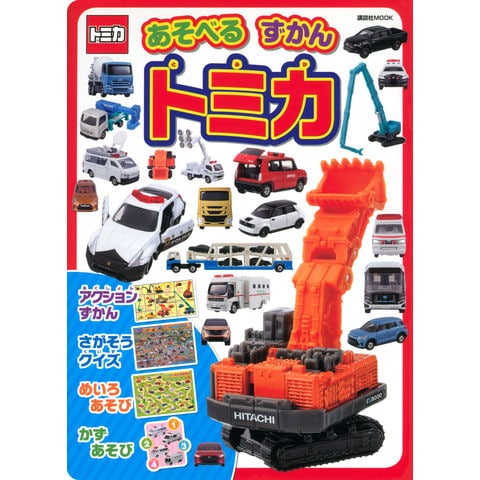開く! 回る! 持ち上がる! はたらくくるまを中心に、トミカのアクションや機能を詳しく紹介! トミカさがしなど楽しい知育あそびもいっぱい!