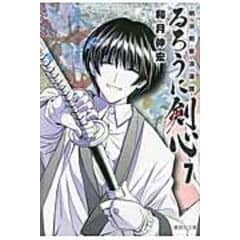 ほほに十字傷、人を殺めることができない「逆刃刀」を持つ、おだやかな雰囲気の剣客・緋村剣心。