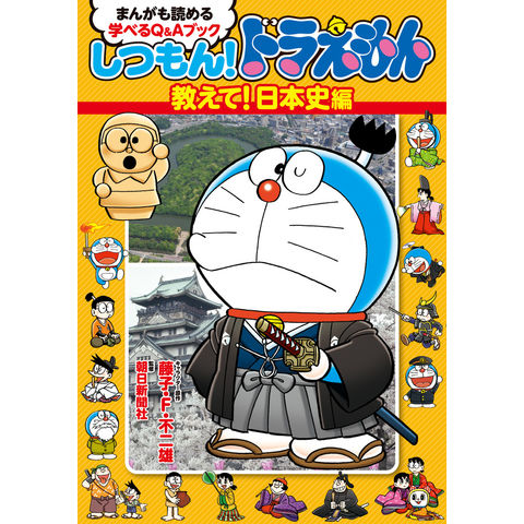 「しつもん!」と「こたえ」のクイズ形式で、3000問以上ある新聞連載の中から、日本史の問題をまとめました。それぞれにドラえもんキャラクターのイラストが入っているオールカラーの本で、イラストを見ているだけでも楽しめます。