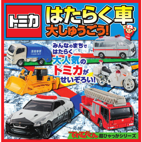 てれびくん超ひゃっかシリーズ『トミカ はたらく車大しゅうごう!』が発売! トミカのはたらく車を、「パトカー」、「消防車・救急車」、「建設・作業車両」、「いろいろなはたらく車」の4グループに分けて紹介しているぞ。本物の車の写真と見くらべたり、キミの近くでどんな働きをしているのかしらべて、車にもトミカにも、もっとくわしくなっちゃおう! 大迫力のロングタイプや、ギフトセットのトミカもたくさんのってるぞ! キミが持ってるトミカを探したり、まだ知らないトミカを発見できるかも!?