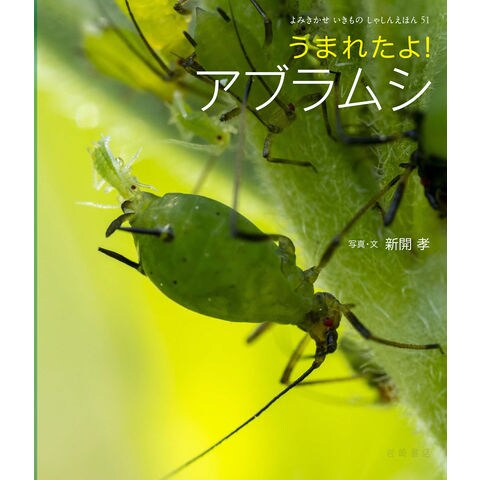 おかあさんアブラムシがお腹の中で育てた幼虫を次々にうみます。春にうまれる赤ちゃんアブラムシには翅がありませんが、やがて数が増えると翅のある赤ちゃんがうまれます。
