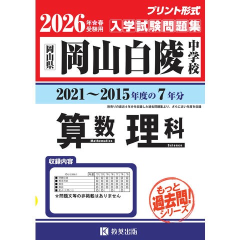 岡山白陵中学校算数・理科 岡山県 2026年春受験用