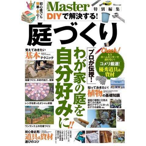 初心者必見の道具&資材選びのコツから、「地盤づくり」や「レンガを使った基本」のテクニック、植物の基礎知識まで、DIYで楽しむ庭づくりの方法を、写真豊富で解説!