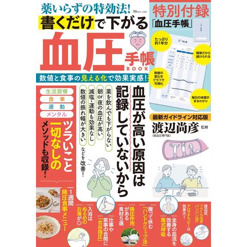 本誌には、数値を書き込むだけでグラフになる、約1年分記載できる「血圧手帳」付きです! 記録するだけで、いつの間にか血圧がみるみる下がっていきます。