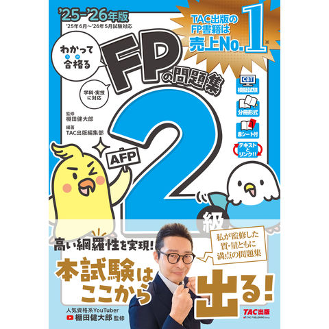 人気YouTuber棚田健大郎さん全面監修のもと、FP書籍売上No.1のTAC出版が2級合格に必要な内容をふんだんに盛り込んだ自信作です。