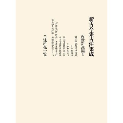 新古今和歌集の古注に関心を持つ研究者が集まりまとめていくシリーズ、「新古今集古注集成」全10巻がついに完結。本巻には、近世新注編として『美尾つくし』『をられぬ水』『をられぬ水』『新古今和歌集書入本』『新古今和歌集』『「石園歌話」附録 美濃尾張家苞評』『竜見林重義評論 美濃尾張家苞くらべ』の7作品を収録。