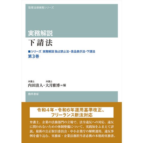 競争法における手続・法執行を重点的に解説する本格的実務書。第3巻、令和6年運用基準改正、フリーランス新法対応の「下請法編」。