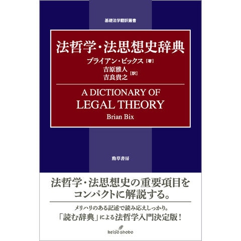 現代法哲学を代表する研究者ブライアン・ビックスによる、法哲学・法思想史394項目の辞典。英語圏だけでなく、ドイツ・フランス語圏の用語も扱う。経済学など関連分野の記述も豊富で、法哲学の広がりが一望できる。原著出版後の事項は訳者の補足で対応。重要どころは数ページでしっかり解説、初学者から中・上級者まで必携の書!