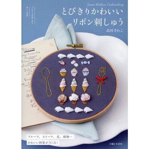 リボン刺しゅう作家・高村さわこさんの初の書籍。花モチーフはもちろん、スイーツやフルーツ、動物モチーフなどを中心に、カジュアルで愛らしく、親しみやすいデザインをご紹介します。ステッチの組み合わせや、単色やグラデーションリボンの使い分けで、リアルなモチーフに作り上げます。フレームやサンプラーのほかに、バッグやブローチ、カードに仕立てた作品も掲載。カーディガンやニットに取り入れるデザインもご紹介しています。リボン刺しゅうの基礎や、便利な道具、ステッチの刺し方などは、ていねいに写真で解説。実物大型紙付き。作品の作り方はイラストで解説。3.5mm幅や7mm幅のリボンを使ってステッチすると、あっという間にモチーフが完成します。今までにない、かわいらしいリボン刺しゅうを堪能できる図案集です。