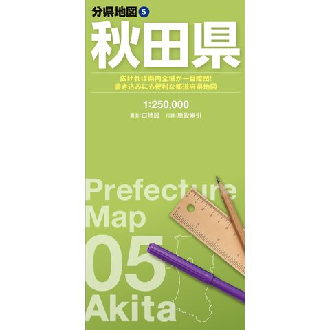 ・市町村役場や自然地形、観光施設が載る索引冊子が付いています。知りたい場所や行きたい場所を簡単に探すことができます