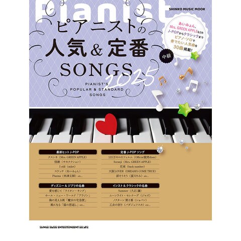 気軽に手に取れてコスパ抜群な、中級向けピアノ楽譜ムックです。最新J-POPヒット曲、定番のインスト曲・ジブリの人気曲、王道のジャズやクラシックなど、ピアノ・ソロで奏でたい人気ナンバーを集めました。トレンドも定番も一冊で楽しめます♪原曲の雰囲気を活かした、弾き応えのあるアレンジです。