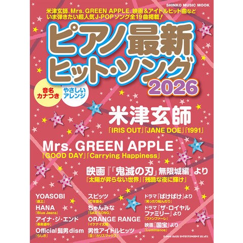初級ピアニストに大好評! ヒット曲が満載でコストパフォーマンス抜群のムックが今年も登場です。米津玄師、Mrs. GREEN APPLE、映画&アイドルヒット曲など、2025年下半期のJ-POPシーンを凝縮した内容になっています♪ すべての音に”ドレミ”の音名カナが入ったやさしいアレンジです。曲目●1991(米津玄師)/GOOD DAY(Mrs. GREEN APPLE)/劇上(YOASOBI)/空(BE:FIRST)/Blue Jeans(HANA)/カリスマックス/革命道中(アイナ・ジ・エンド)/残酷な夜に輝け(映画『劇場版「鬼滅の刃」無限城編 第一章 猗窩座再来』)/IRIS OUT(映画『チェンソーマン レゼ篇』)/Luminance(映画『国宝』)/ファンファーレ(ドラマ『ザ・ロイヤルファミリー』)/笑ったり転んだり(ドラマ『ばけばけ』)/他、全19曲予定