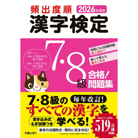 また、7・8級配当漢字をより効率よく学習できるよう、7・8級の配当漢字の頻出度順に対応させて「漢字表」と「読み」「書き取り」の問題を順に掲載。