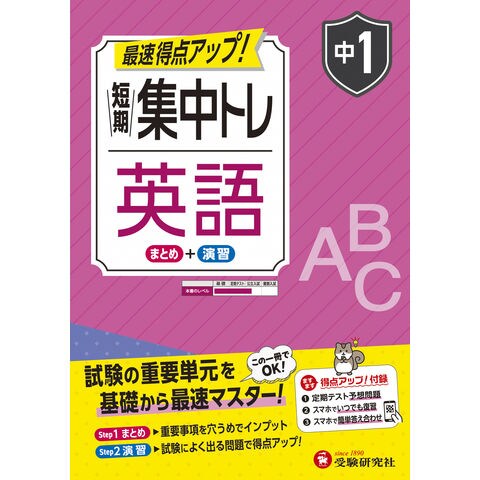 「中1 短期集中トレ 英語」は、基礎をマスターして平均点以上をめざす問題集です。