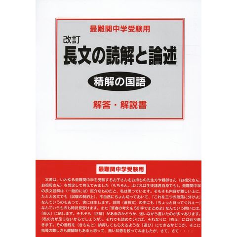 精解の国語 長文の読解と論述【解答・解説書】 最難関中学受験用 改訂 /萩原直三
