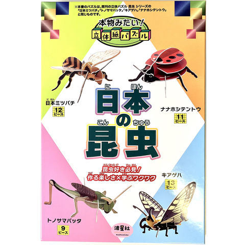 本物みたい!立体紙パズル 日本の昆虫 日本ミツバチ ナナホシテントウ トノサマバッタ キアゲハ 昆虫好き必見!作る楽しさ×学ぶワクワク /なみぼしはなこ