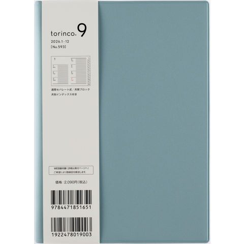 593 torinco9 手帳 高橋書店 2026年版 ダルブルー ウィークリー B6判