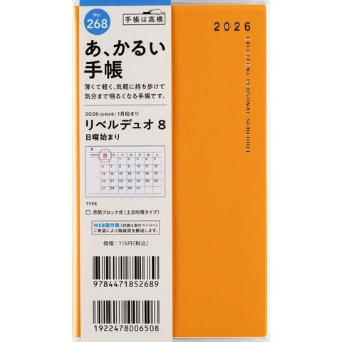 268 リベルデュオ 8 手帳 高橋書店 2026年版 ライト・ミモザ マンスリー 手帳判