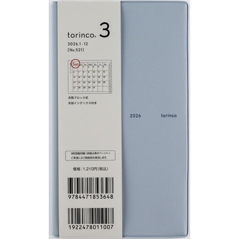 521 torinco3 手帳 高橋書店 2026年版 クールブルー マンスリー 手帳判