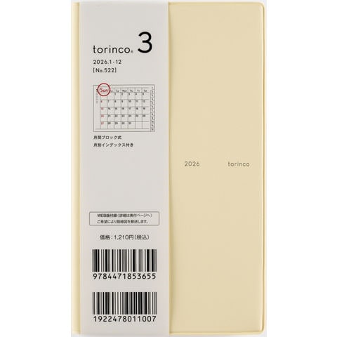 522 torinco3 手帳 高橋書店 2026年版 バターイエロー マンスリー 手帳判