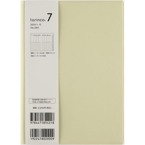 581 torinco7 手帳 高橋書店 2026年版 クリームピスタチオ ウィークリー B6判