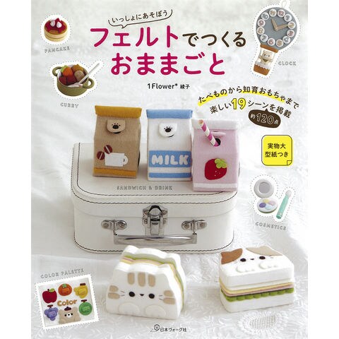 1flower*(ワンフラワー)としてインスタグラム等で作品を発表する大人気の造形作家綾子さんのフェルトのおもちゃの本。作品ラインナップは、パンケーキ、サンドイッチ、カレー、DIY工具、メディカルセット、知育遊びの要素を盛り込んだソーイング、絵合わせ、時計、三つ編み遊びなど楽しいシーンを揃えています。親子やお友達といっしょに遊んで楽しく、学びの要素もある内容です。作者の大きな特徴でもあるパステル調やくすみカラーのフェルトを取り入れたフェルト手芸の魅力がいっぱい詰まったスペシャルな1冊です。