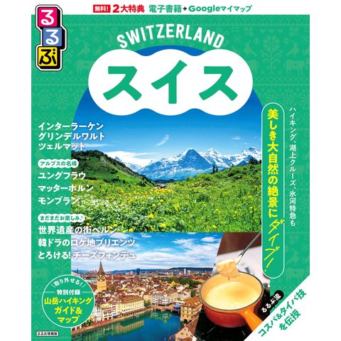 アルプスの名峰の絶景を存分に楽しむ展望台、山麓の街や村をガイドしたスイス観光の決定版。SNSで話題の逆さマッターホルンや、人気韓国ドラマ『愛の不時着』の舞台でもあるブリエンツ湖も紹介。