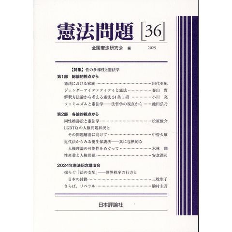 全国憲法研究会の2024年研究集会、記念講演会の活動を記録する。36号では「性の多様性と憲法学」のテーマを取り扱う。