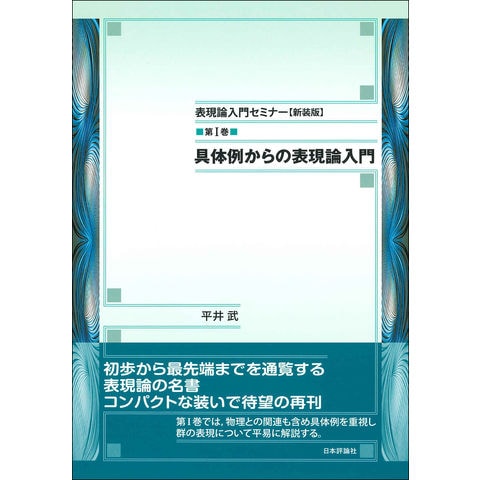 初歩から最先端まで通覧する表現論の名書、新装版で再刊。第I巻は、物理との関連も含め具体例を重視し、群の表現を平易に解説。