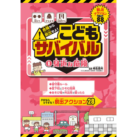 1巻では「身近な危険」として、留守番や登下校、交通機関や近くで遊んでいるときに子どもが遭遇しやすい危険について、事前に備えて置くべきことや、巻き込まれてしまったときの対処方法などをご紹介します。